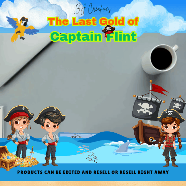 About this product "THE LAST GOLD OF CAPTAIN FLINT" is a full-color, digitally illustrated storybook suitable for kids. This thrilling, adventurous children's book is packed with pirates, treasure maps, and ghostly legends that kids will love. Perfect for sparking imagination, it reads like a high-seas dream come to life—and young readers are sure to be hooked! Features: ~Colorful illustrations ~Exciting, action-filled tale that kids will enjoy ~DIY printable – print at home or your local print shop ~Well-designed text and engaging images for early readers ~Suitable for children of all ages ! Whether you are a parent, a teacher, or just a lover of storybooks, "THE LAST GOLD OF CAPTAIN FLINT" has something for everyone! Plus, you’ll get the link to the Canva template. You can customize and even rebrand and resell that storybook as your own. Ideal for personalized gifts, teaching resources, or growing your story library. Perfect For: ~Children who enjoy bold, pirate-filled adventures ~Parents in search of a unique and exciting read ~Teachers looking for creative, print-ready stories ~Entrepreneurs and creatives who want to make and resell So print, customize, and set sail on this epic treasure hunt with your readers today